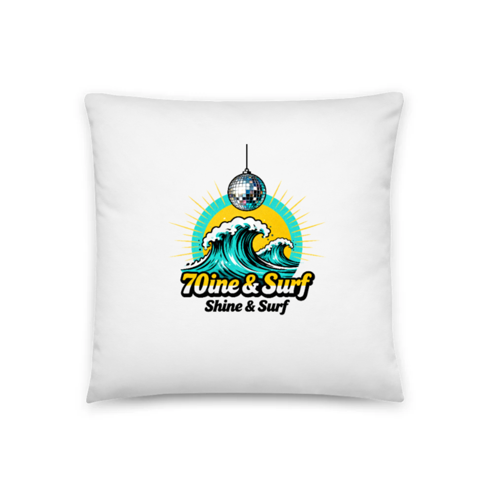 Celebrate the 70s with this 18″x18″ Basic Pillow featuring a vibrant disco ball above crashing ocean waves, set against a retro sunburst. Perfect for surf lovers and disco enthusiasts. Soft, white fabric with bold, eye-catching print. Ideal for living rooms, bedrooms, or as a fun gift. Shine & Surf—where vintage vibes meet coastal energy.