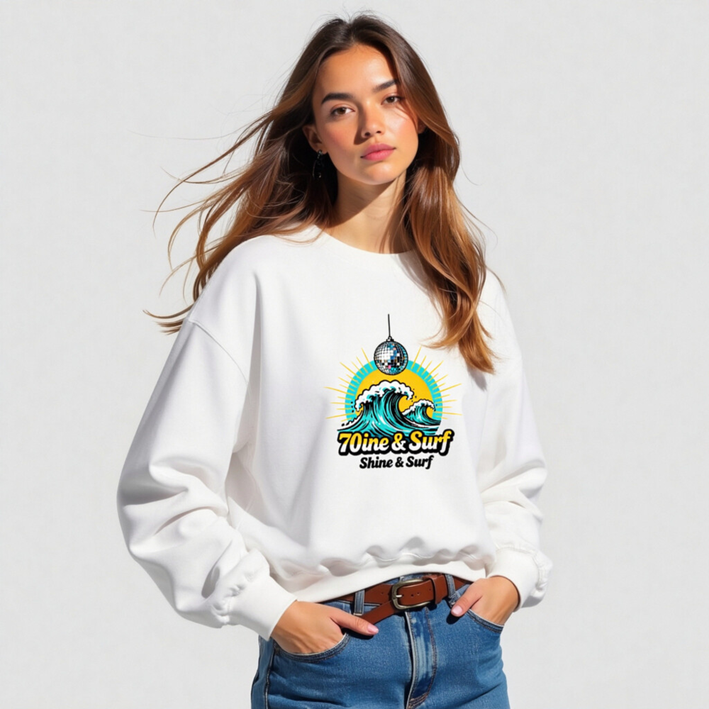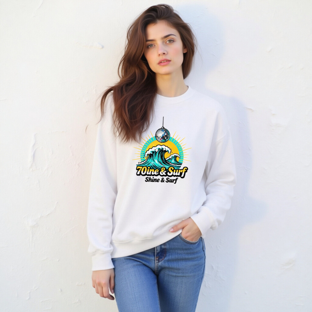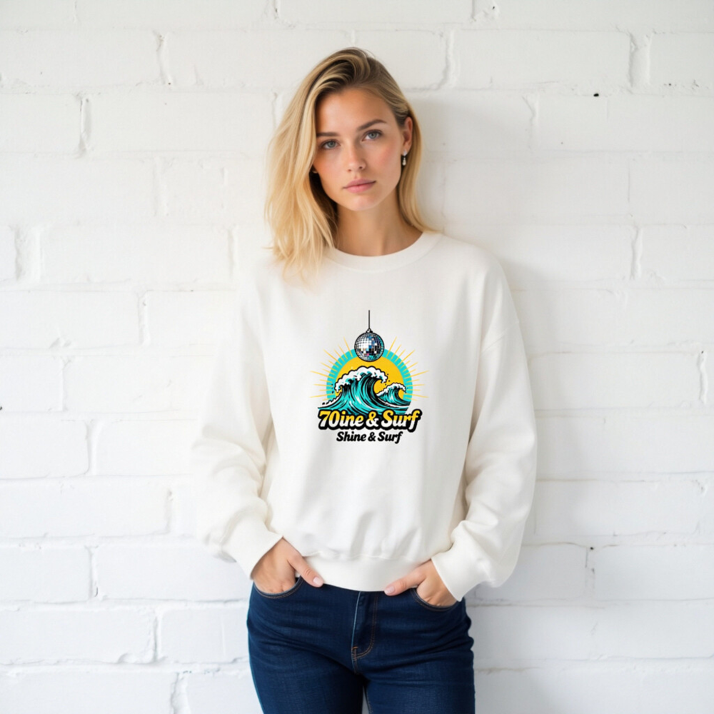 70ine & Surf Unisex Crew Neck Sweatshirt | Disco Wave Design