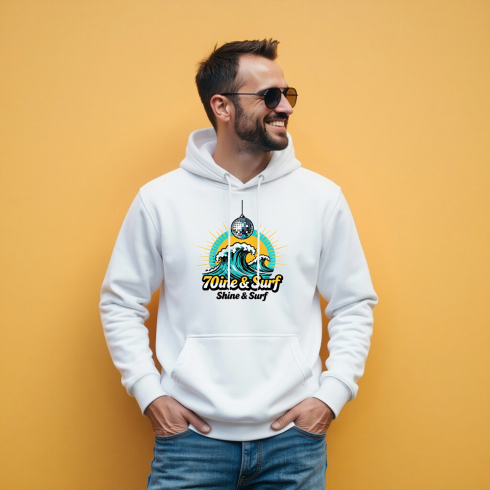 70ine & Surf Unisex Premium Pullover Hoodie – Disco Wave Design