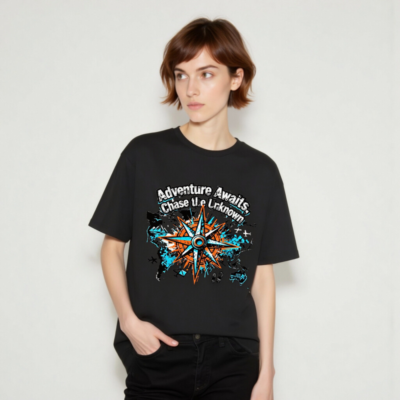 Discover our unisex organic cotton t-shirt featuring a bold compass design with vibrant orange and teal splashes, symbolizing exploration. Crafted for comfort and sustainability, this eco-friendly tee supports ethical production. Perfect for adventurers who embrace the unknown—lightweight, breathable, and machine-washable. Ideal for travel, outdoor lovers, or anyone seeking meaningful style.