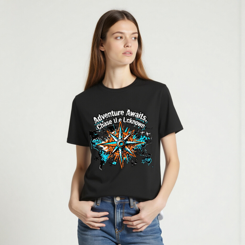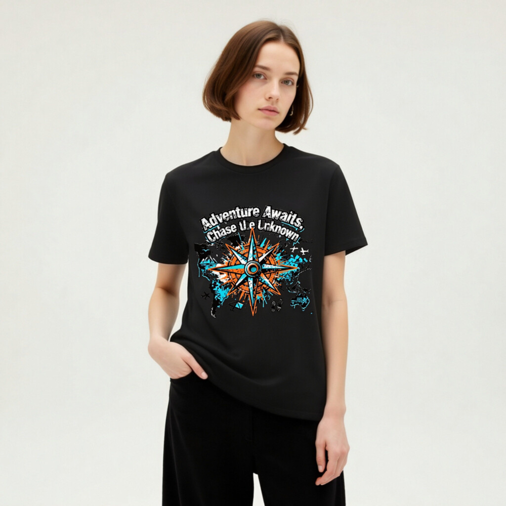 Discover our unisex organic cotton t-shirt featuring a bold compass design with vibrant orange and teal splashes, symbolizing exploration. Crafted for comfort and sustainability, this eco-friendly tee supports ethical production. Perfect for adventurers who embrace the unknown—lightweight, breathable, and machine-washable. Ideal for travel, outdoor lovers, or anyone seeking meaningful style.