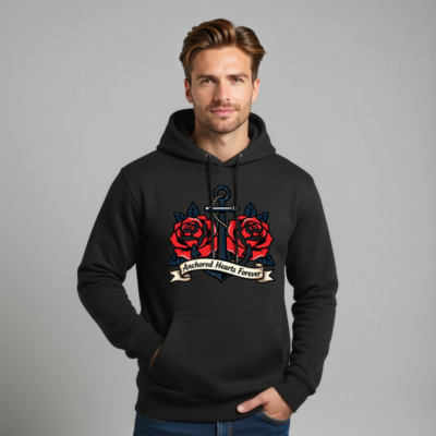 Anchored Hearts Forever Hoodie – Unisex Premium Pullover with Rose Anchor Tattoo Design