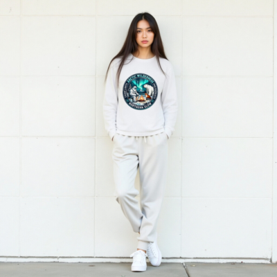 Arctic Wilderness Northern Glow Long Sleeve Tee – Polar Bear, Yeti & Fox Campfire Design