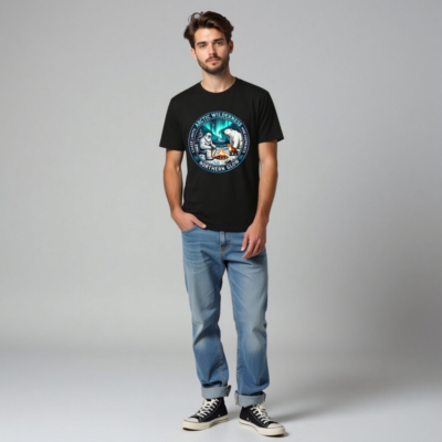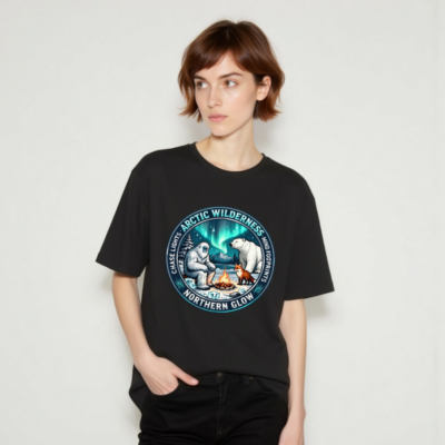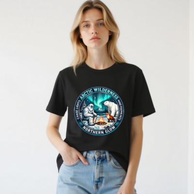 Experience the magic of the Arctic with this unisex staple t-shirt featuring a captivating design: Yeti, polar bear, and fox gathered around a campfire beneath vibrant aurora borealis. ‘Arctic Wilderness’ and ‘Northern Glow’ highlight the theme, while ‘Chase Lights’ and ‘Mind Footprints’ evoke adventure and mindfulness. Perfect for nature lovers seeking cozy, meaningful style.