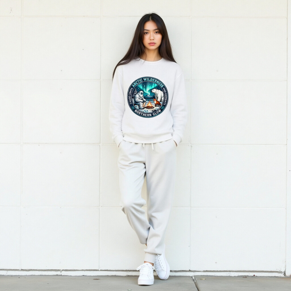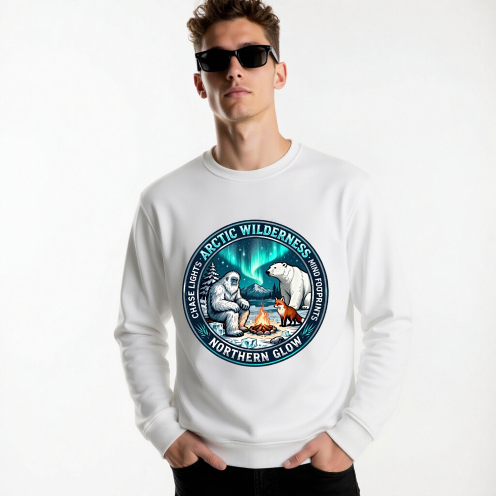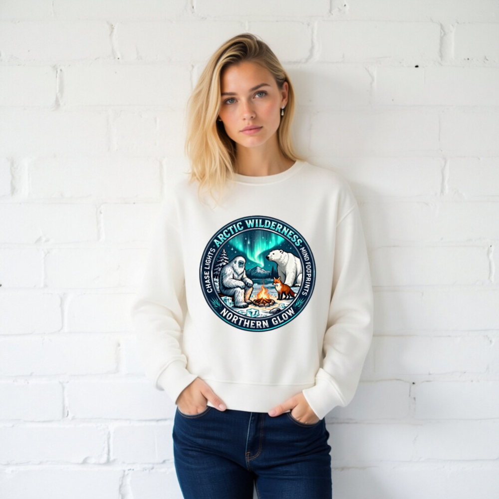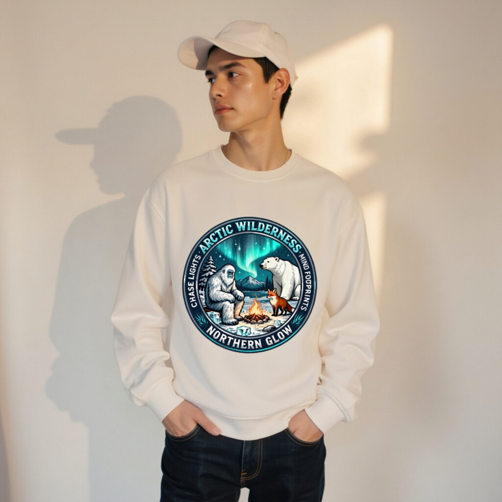 Arctic Wilderness Organic Sweatshirt | Northern Glow, Yeti & Polar Bear