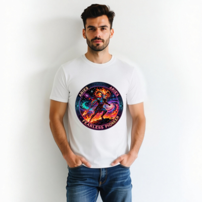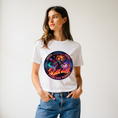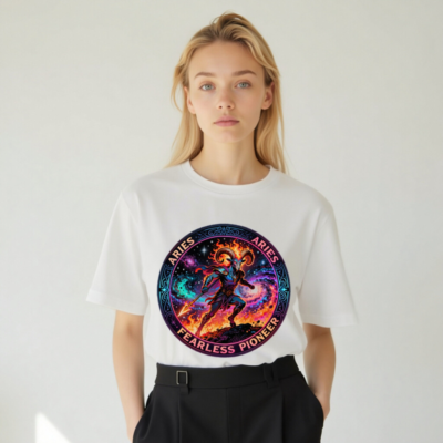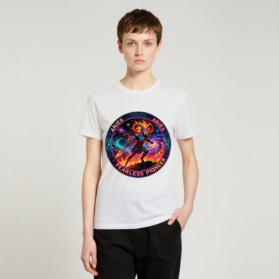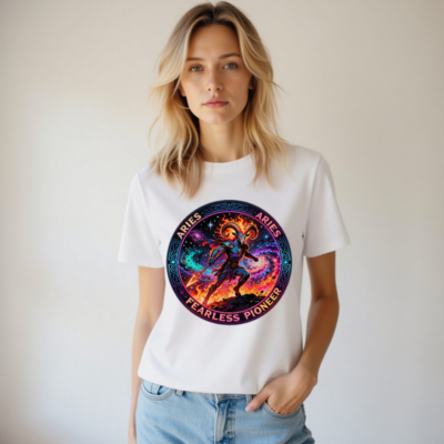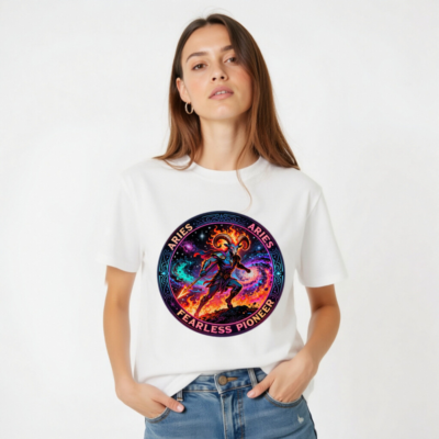 Celebrate Aries with this bold unisex organic cotton t-shirt featuring a vibrant cosmic ram warrior design—’Fearless Pioneer’ encircling the fierce, flame-horned zodiac symbol. Crafted for comfort and style, it’s made from certified organic cotton (no additional certifications claimed beyond material origin). Perfect for astrology lovers seeking empowered, eye-catching everyday wear.