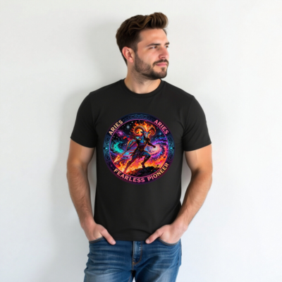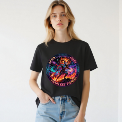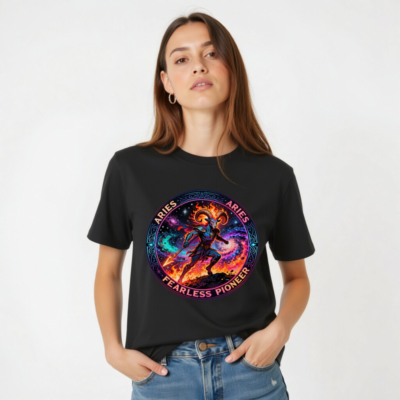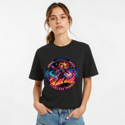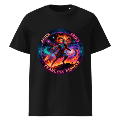 Celebrate Aries with this bold, unisex organic cotton t-shirt featuring a vibrant cosmic ram warrior design—’Fearless Pioneer’ encircling the celestial artwork. Crafted for comfort and sustainability, it’s made from certified organic cotton (verified by standard: GOTS). Ideal for astrology lovers seeking empowering, high-quality apparel. Perfect gift or self-indulgence for zodiac enthusiasts.