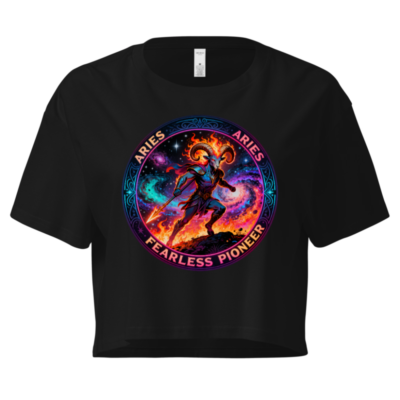 Aries Fearless Pioneer Women’s Crop Top – Cosmic Ram Warrior Design