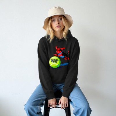 Ballistic Paws Unisex Eco Hoodie – Sustainable Essential Sweatshirt with Dog & Tennis Ball Graphic