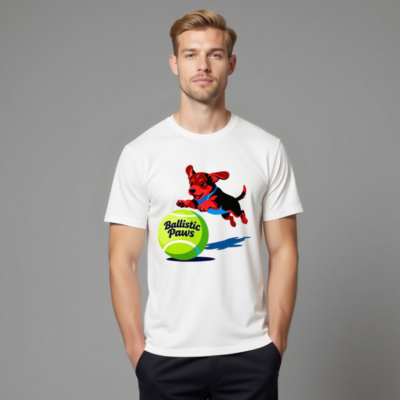 Ballistic Paws Unisex T-Shirt – Fun Dog & Tennis Ball Graphic, Comfort Fit