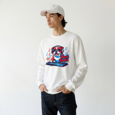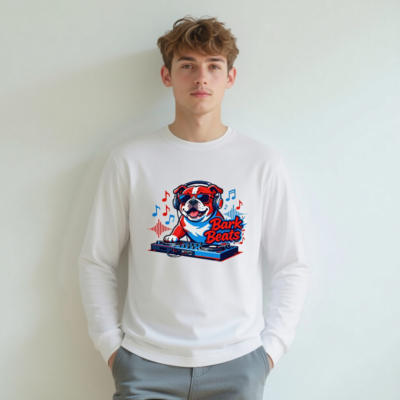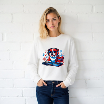 Show off your love for music and pets with this vibrant unisex long sleeve tee featuring a red, white & blue bulldog DJing on a turntable. The ‘Bark Beats’ design includes headphones, sunglasses, and musical notes—perfect for dog lovers who groove to the beat. Soft cotton blend, comfortable fit, ideal for casual wear or music events.