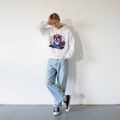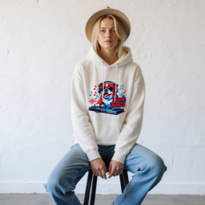 Show off your love for music and pets with this premium unisex pullover hoodie featuring a vibrant ‘Bark Beats’ graphic: a red-and-white bulldog DJing with headphones, turntables, and musical notes. Made for comfort and style—perfect for music lovers, dog enthusiasts, or as a fun gift. Soft, durable fabric; classic fit with front pouch pocket. Designed to stand out in every season.