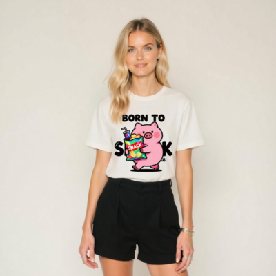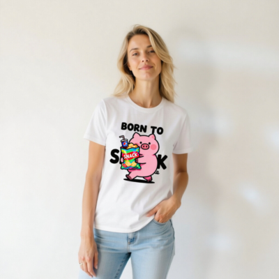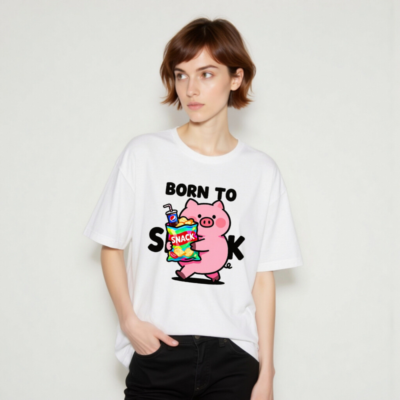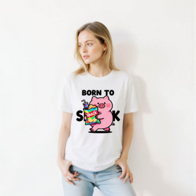 Born to Snack Pig T-Shirt | Unisex Staple Tee with Cute Pig & Snacks Graphic