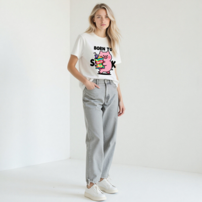 A fun, unisex staple t-shirt featuring a cute pink pig holding a rainbow snack bag and Pepsi cup—perfect for food lovers. Soft cotton blend, classic fit, versatile for casual wear. Ideal gift for snack enthusiasts. Designed for comfort and playful style.