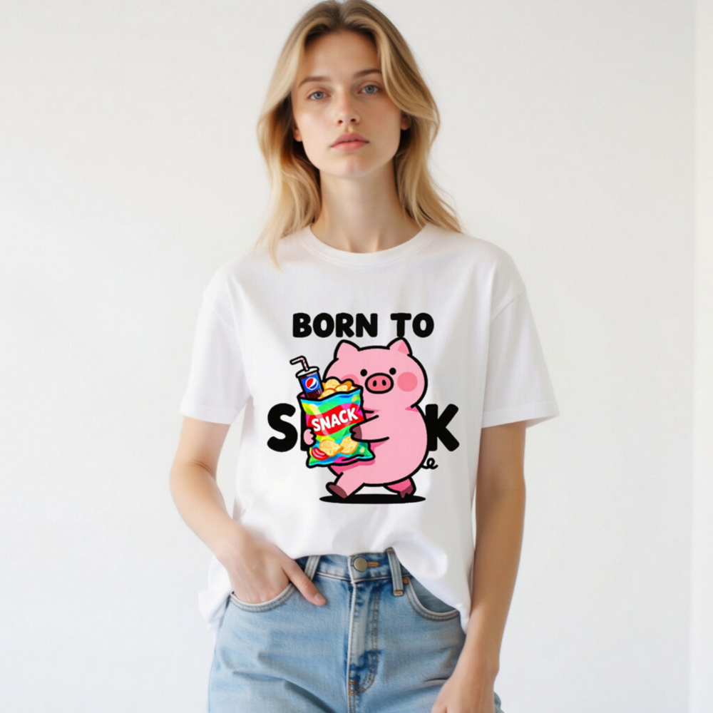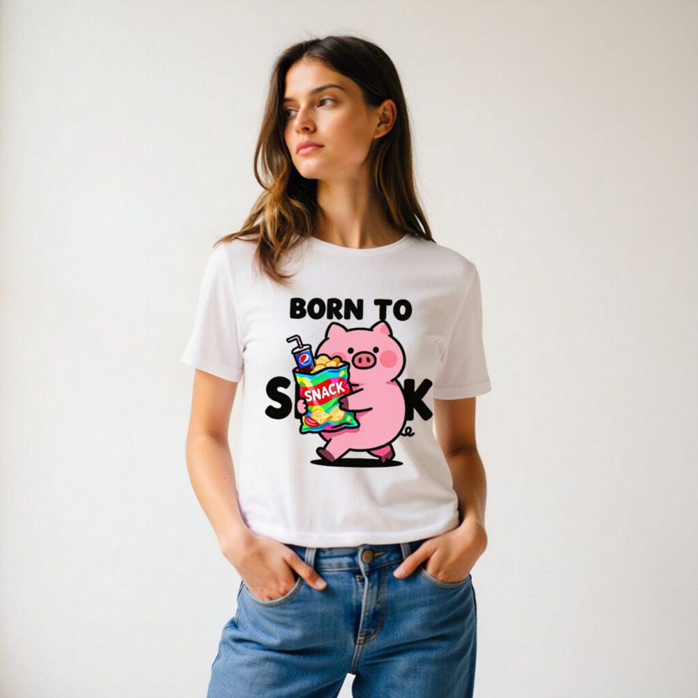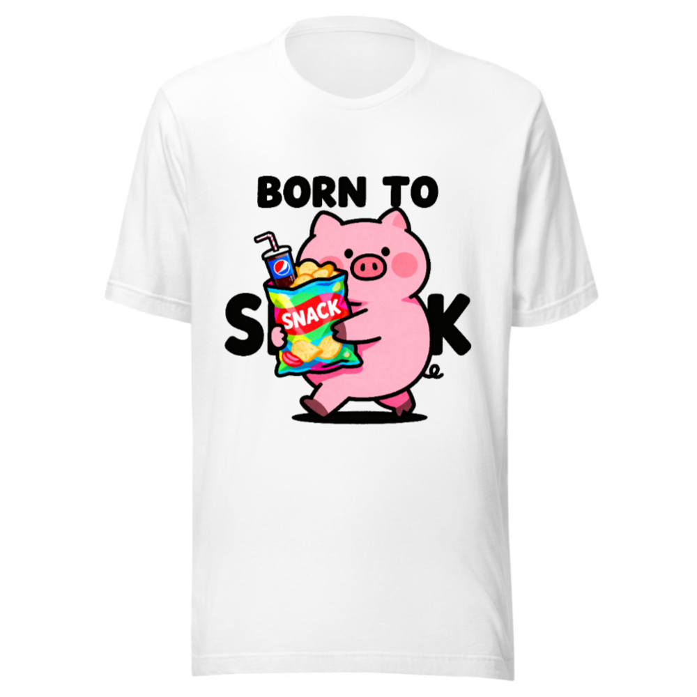 Born to Snack Pig T-Shirt | Unisex Staple Tee with Cute Pig & Snacks Graphic