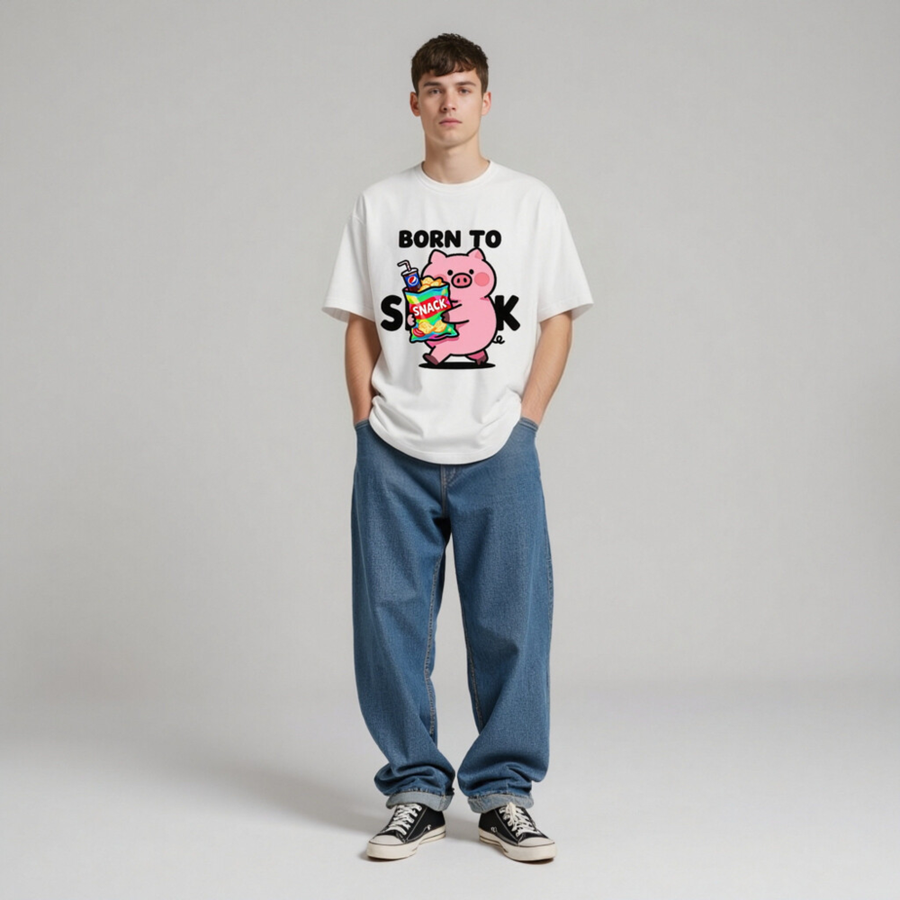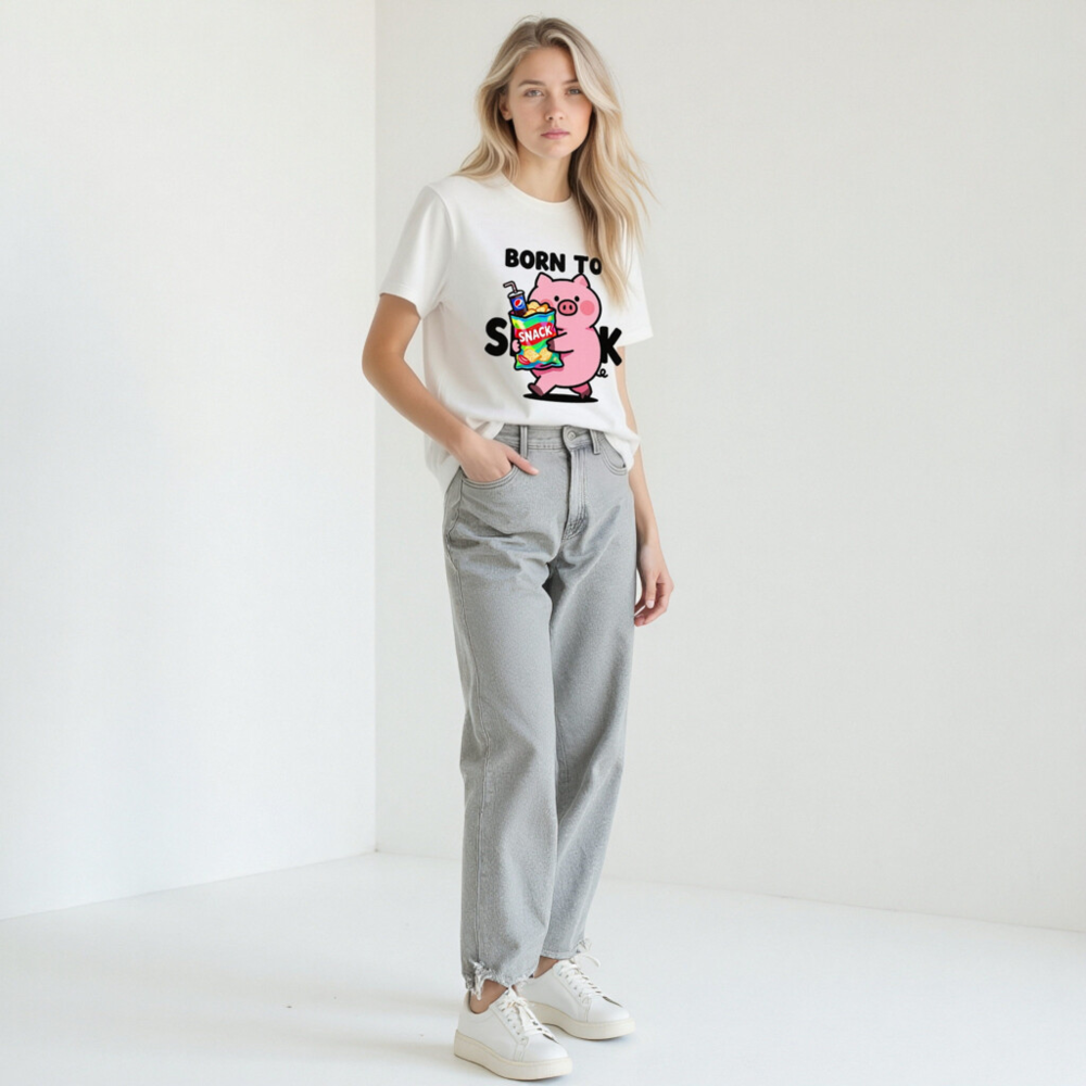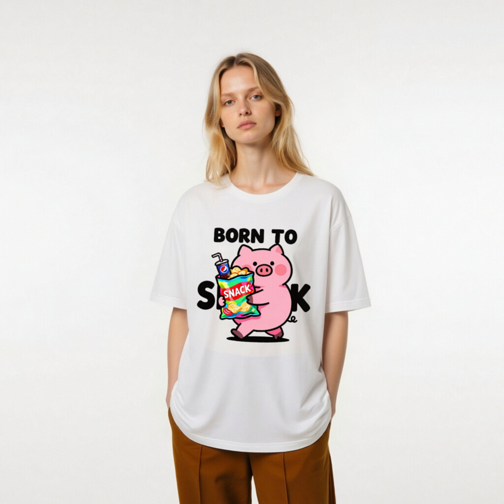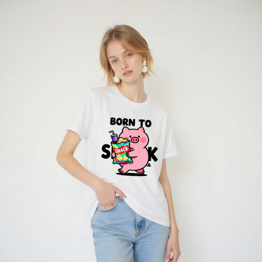 Born to Snack Pig T-Shirt | Unisex Staple Tee with Cute Pig & Snacks Graphic