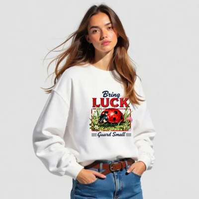 This cozy unisex crew neck sweatshirt features a charming vintage-style ‘Bring Luck, Guard Small’ graphic with a classic red ladybug in grass and wildflowers. Soft, durable cotton-blend fabric ensures all-day comfort. Perfect for casual wear, gifting, or adding playful charm to your wardrobe. The nostalgic design appeals to nature lovers and those who appreciate whimsical, meaningful apparel. Machine washable and pre-shrunk for lasting fit. A fun, uplifting piece that spreads positivity—ideal for spring, summer, or layering year-round.