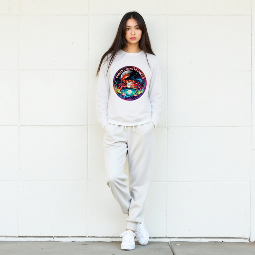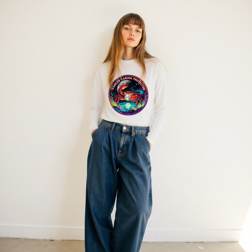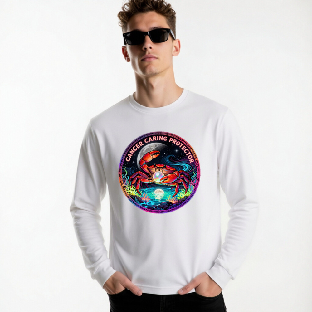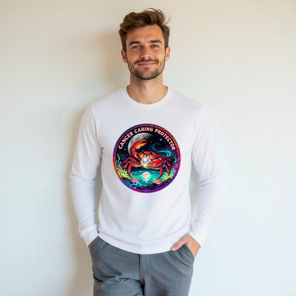 Cancer Caring Protector Crab Long Sleeve Tee – Unisex, Vibrant Astro-Sea Design