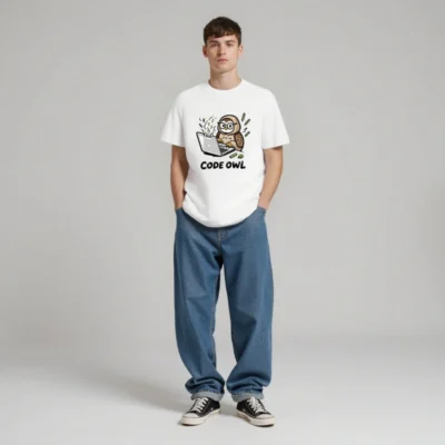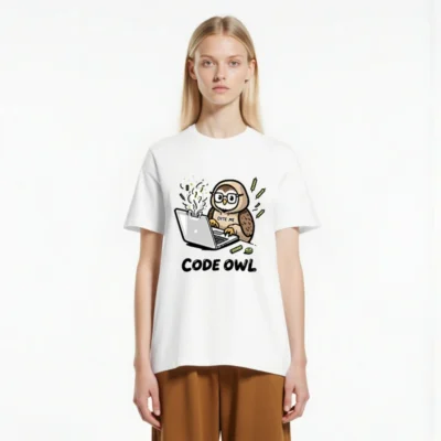 This unisex organic cotton t-shirt features a playful ‘Code Owl’ design with an owl coding on a steaming laptop, surrounded by circuit elements. The soft, eco-friendly fabric ensures comfort and sustainability. Perfect for developers, tech lovers, or anyone who appreciates witty tech humor. Made with certified organic cotton—no synthetic additives or harmful dyes.