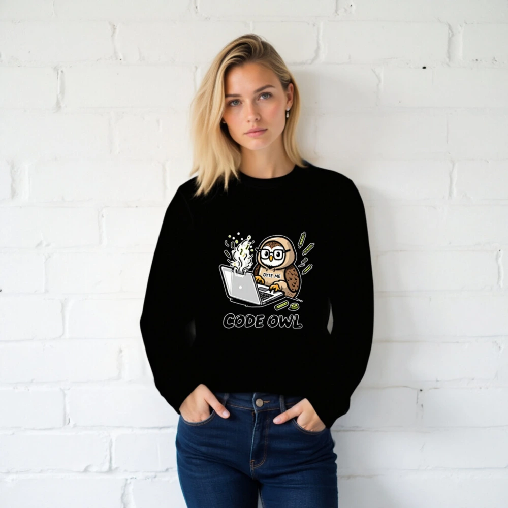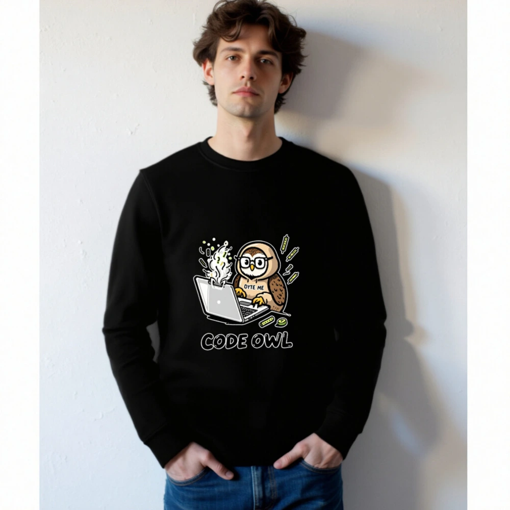 Wear your coding passion with this unisex organic sweatshirt featuring a cute owl hacking on a laptop—’OYTE ME’ and ‘CODE OWL’ design. Made from certified organic cotton, it’s soft, sustainable, and perfect for developers, students, or tech lovers who value eco-conscious fashion. Lightweight, comfortable, and proudly designed for everyday wear.
