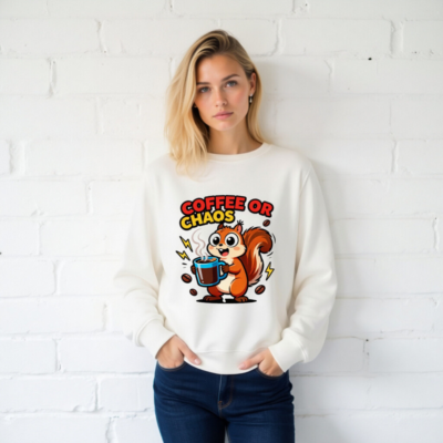 Charm your day with this unisex organic sweatshirt featuring a playful squirrel holding steaming coffee, surrounded by beans and lightning bolts. Designed for comfort and sustainability, it’s made from certified organic cotton—no synthetic additives, no hidden certifications. Perfect for coffee lovers who embrace the chaos. Soft, breathable, and ethically crafted for everyday wear.