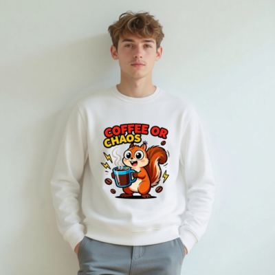 Coffee or Chaos Squirrel Organic Sweatshirt | Unisex Eco-Friendly Crewneck