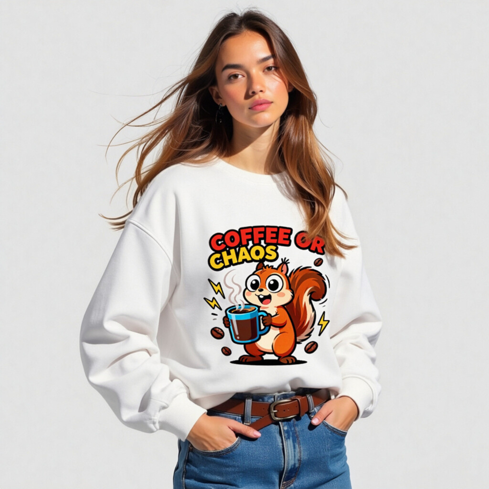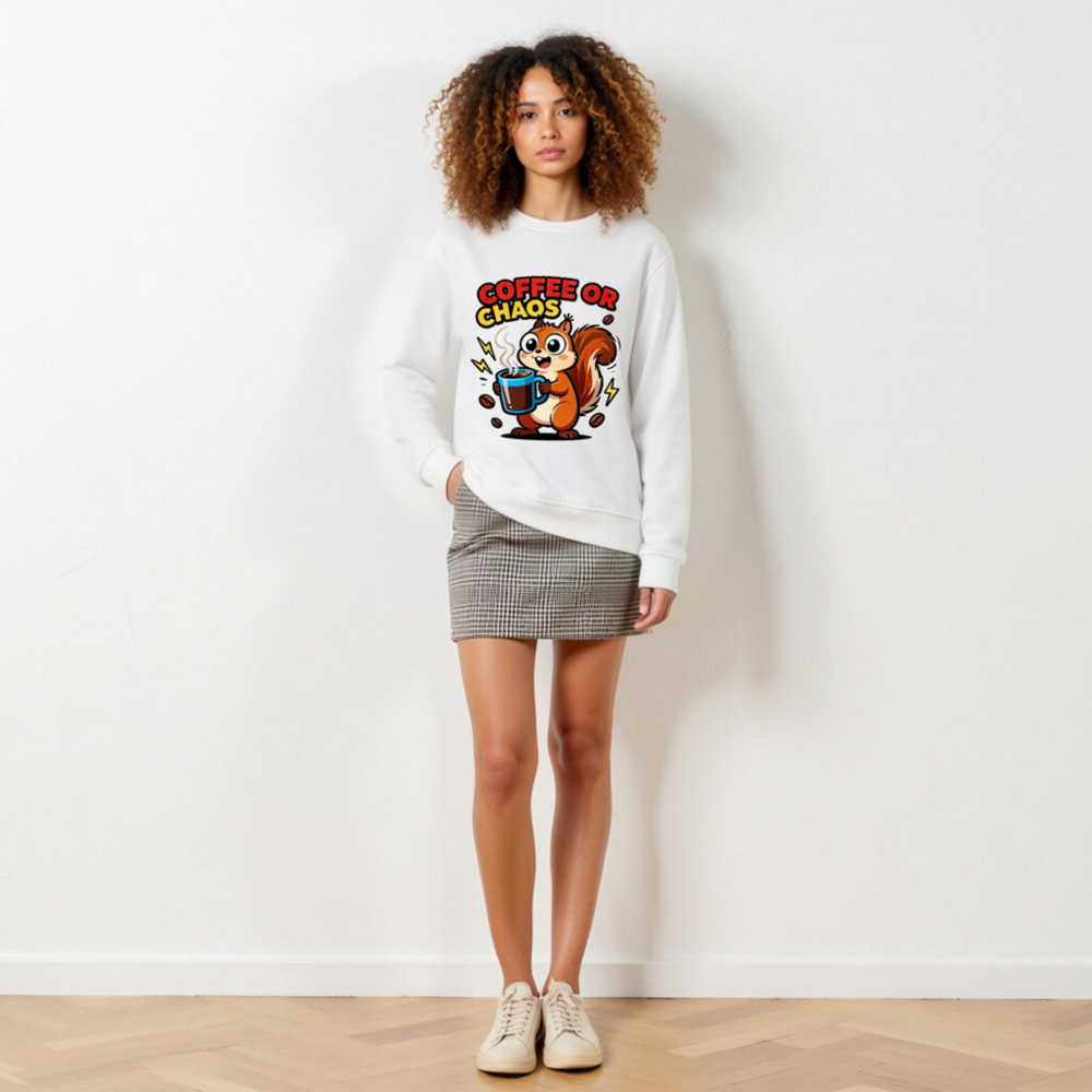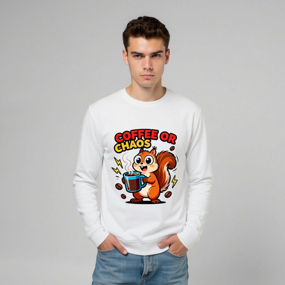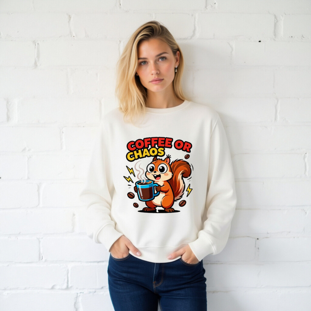Coffee or Chaos Squirrel Organic Sweatshirt | Unisex Eco-Friendly Crewneck