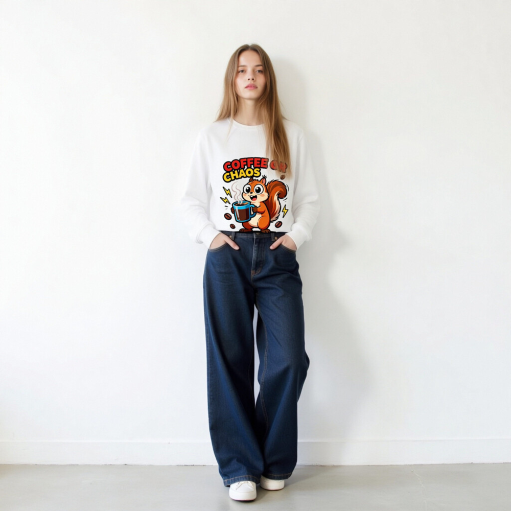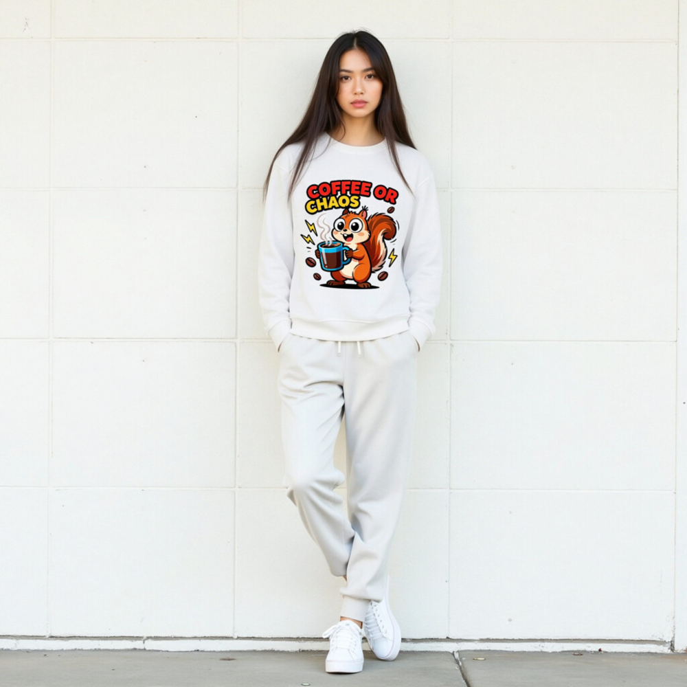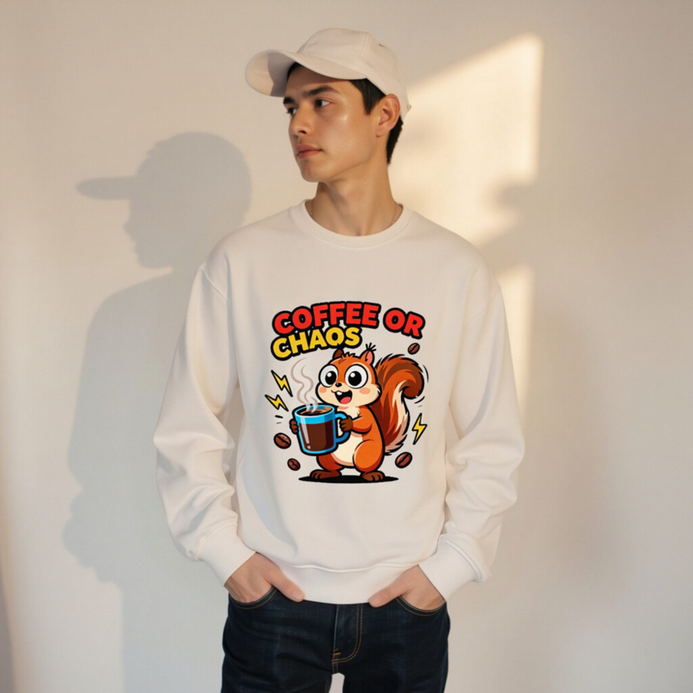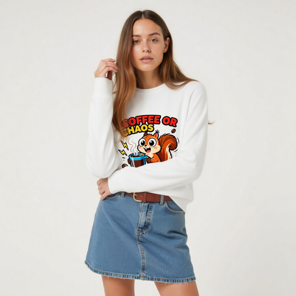 Coffee or Chaos Squirrel Organic Sweatshirt | Unisex Eco-Friendly Crewneck