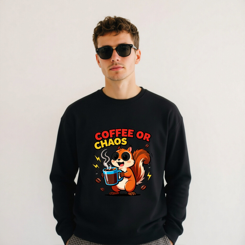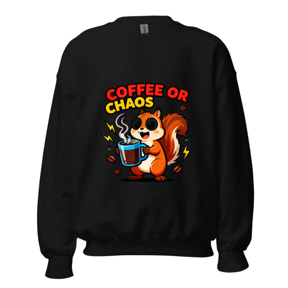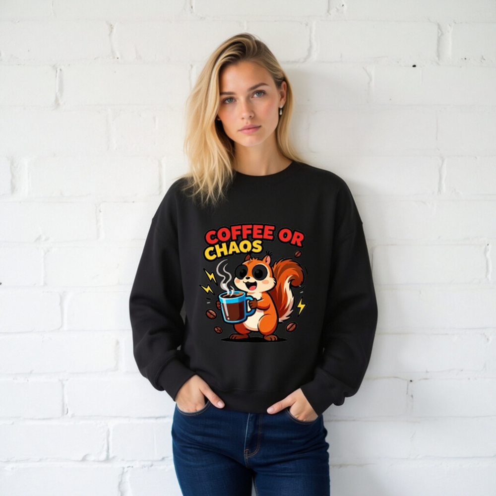 Coffee or Chaos Squirrel Sweatshirt | Unisex Crew Neck, Fun Coffee Lover Design