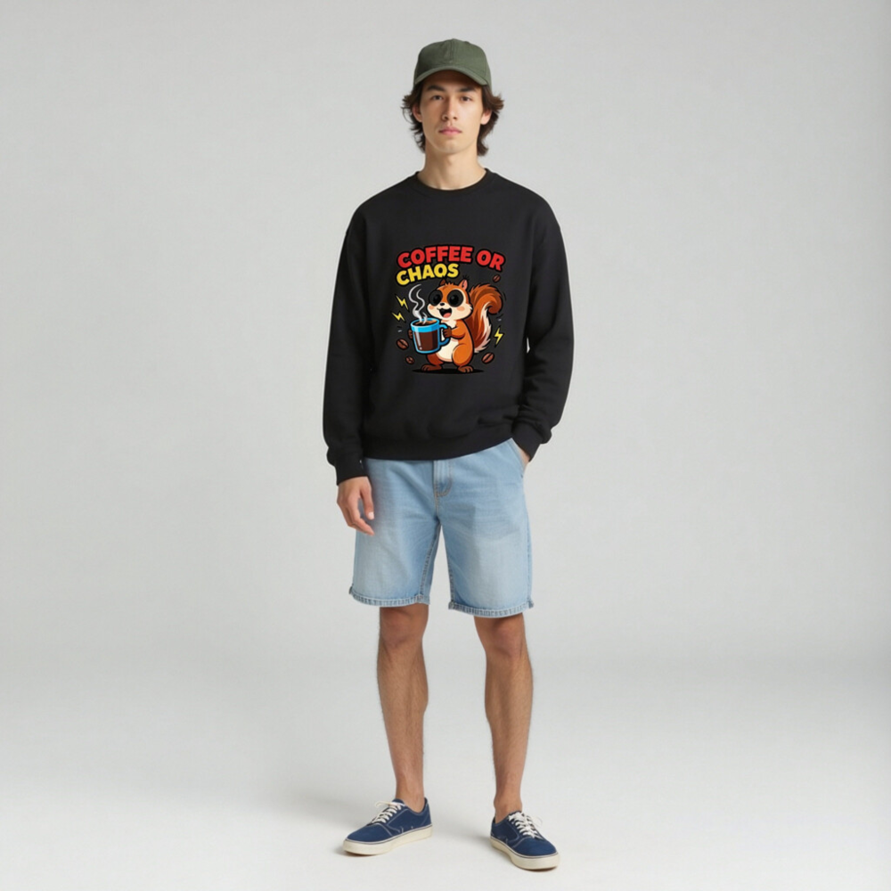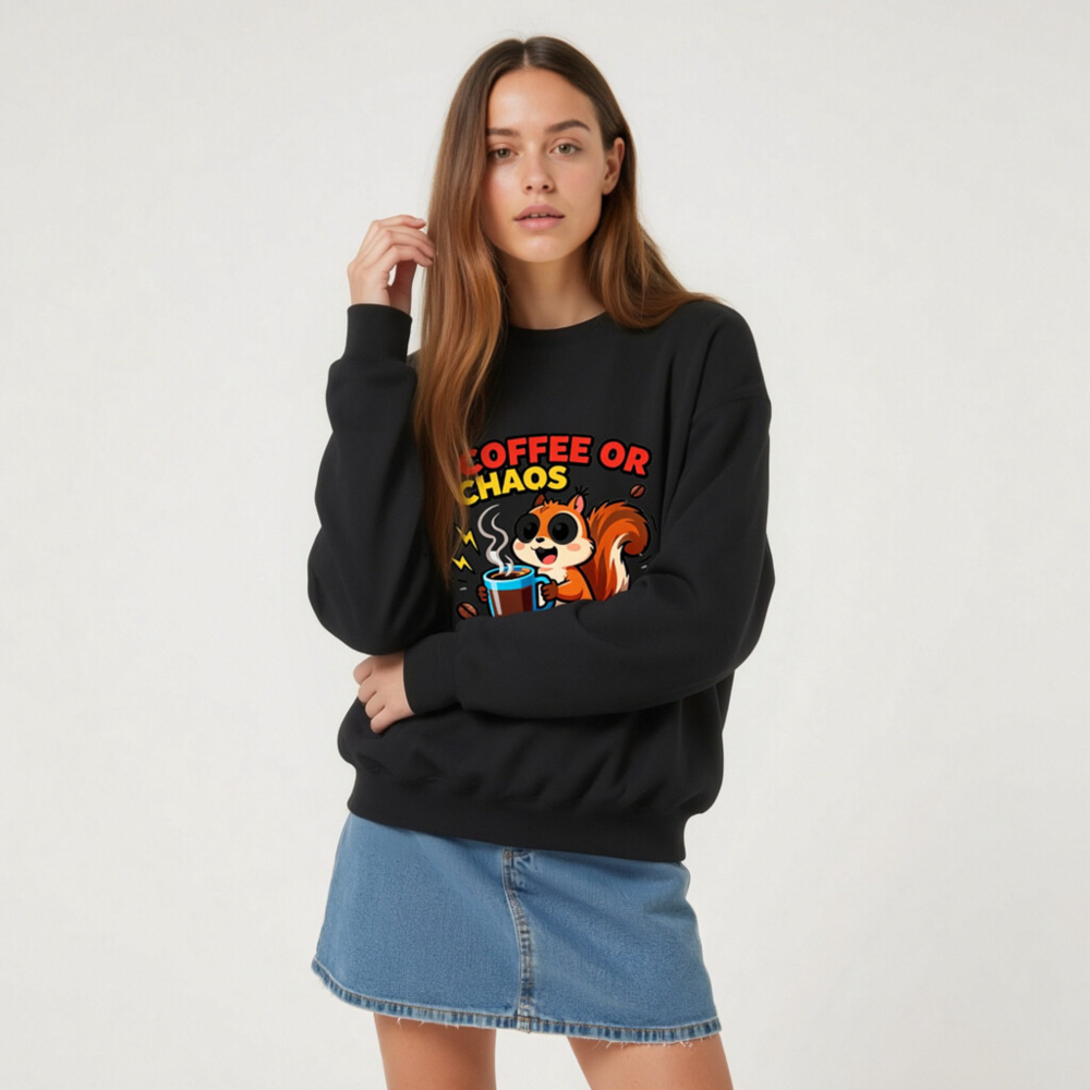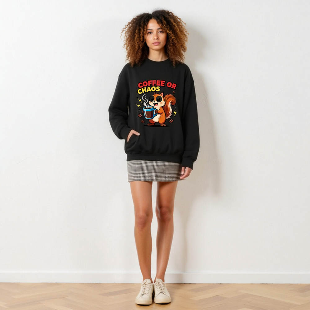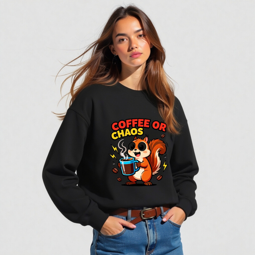 Coffee or Chaos Squirrel Sweatshirt | Unisex Crew Neck, Fun Coffee Lover Design