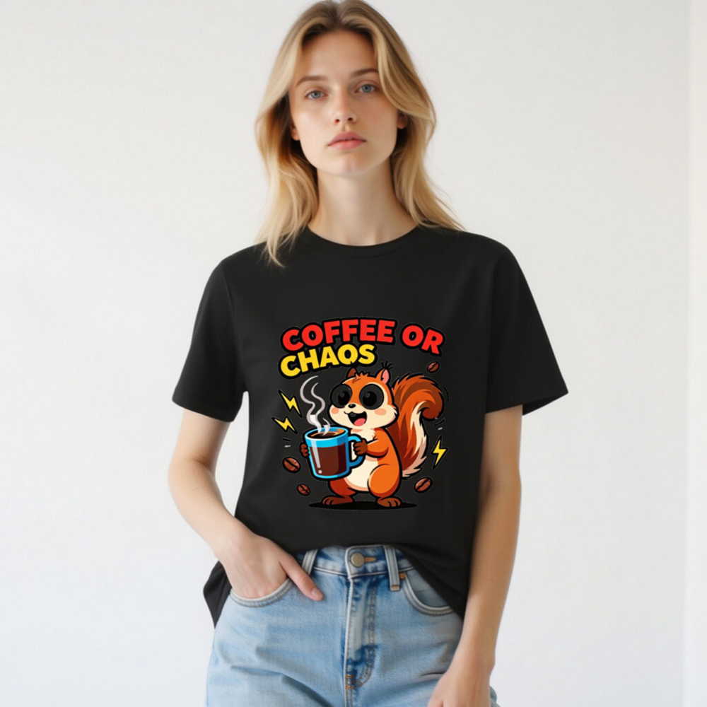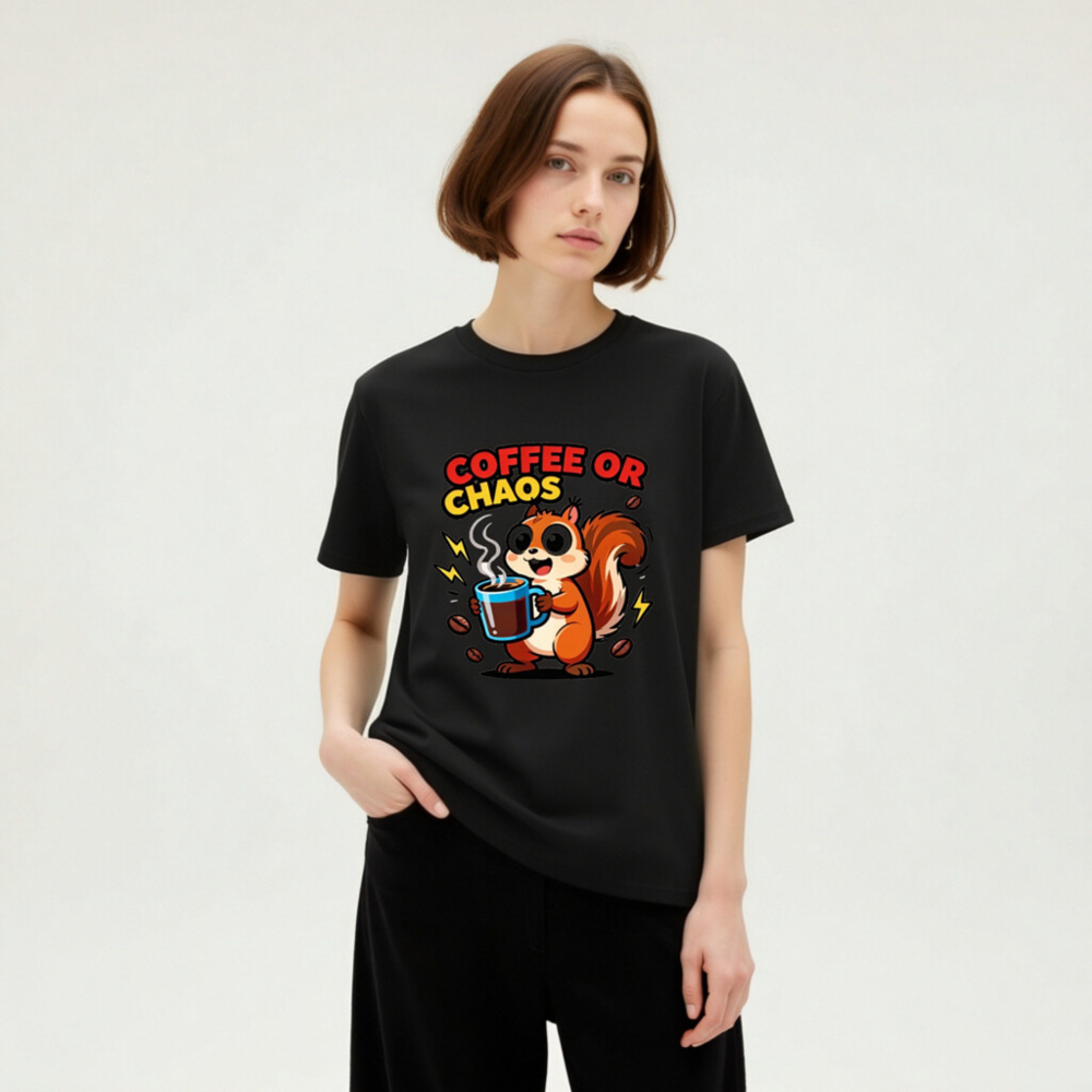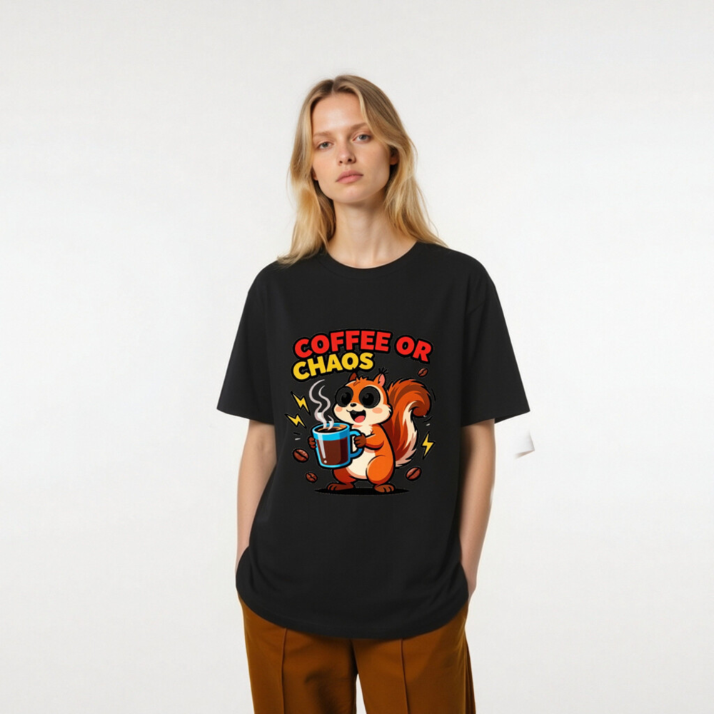 Coffee or Chaos Squirrel T-Shirt | Unisex Organic Cotton Tee