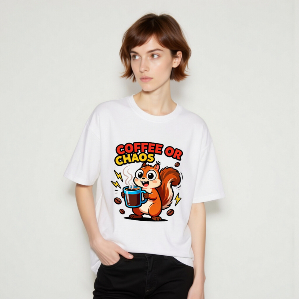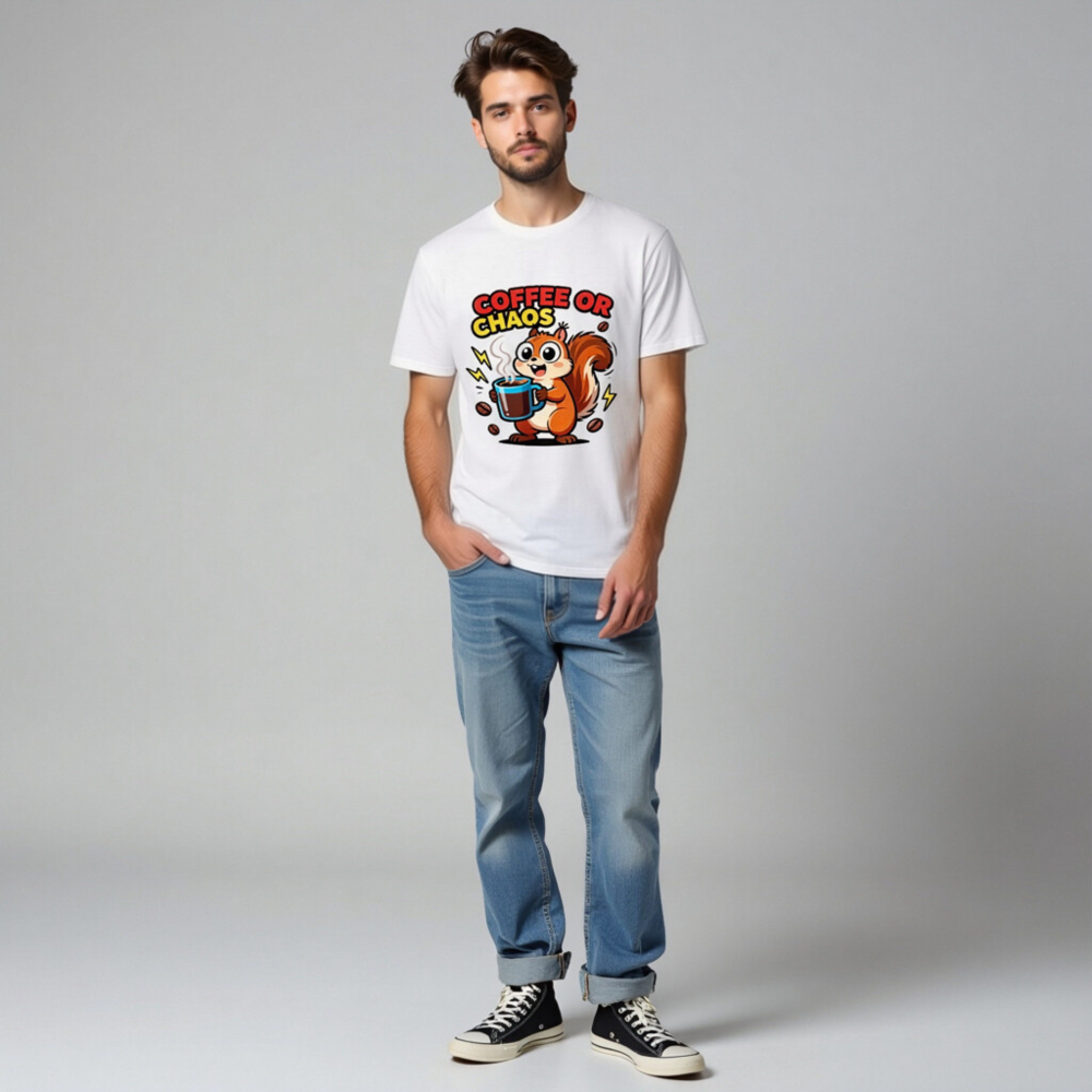 Coffee or Chaos Squirrel T-Shirt | Unisex Organic Cotton Tee