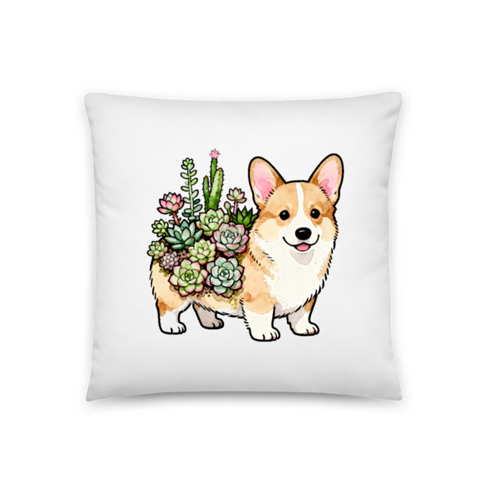 Adorable 18″x18″ decorative throw pillow featuring a charming corgi with a vibrant succulent garden on its back. Perfect for plant lovers, dog enthusiasts, and cozy home decor. Soft, high-quality fabric with vivid watercolor-style print. Ideal as a gift or to add whimsy to your living space. Machine washable for easy care.
