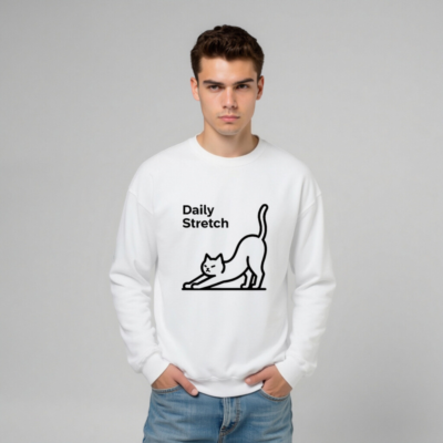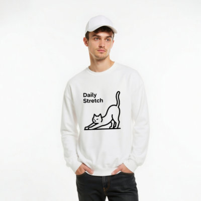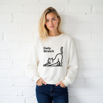 Show your love for cats and wellness with this unisex crew neck sweatshirt featuring a minimalist black line-art cat in a stretch pose, paired with the playful ‘Daily Stretch’ text. Soft, comfortable, and stylish—perfect for casual wear or yoga enthusiasts. Designed for everyday comfort with a relaxed fit. Machine washable. No certifications or claims added beyond what is explicitly provided.