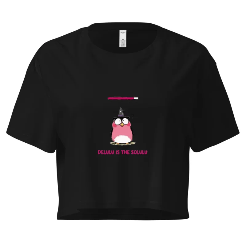 Delulu is the Solulu Women’s Crop Top – Pink Wizard Owl Design