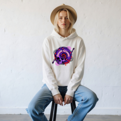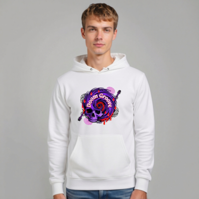 Featuring a bold purple skull with swirling ‘Doom Groove’ text, electric guitar motifs, and dripping red accents—this unisex essential eco hoodie combines dark rock aesthetics with sustainable fashion. Made from eco-friendly materials for comfort and conscience. Perfect for music lovers seeking edgy, ethical style.