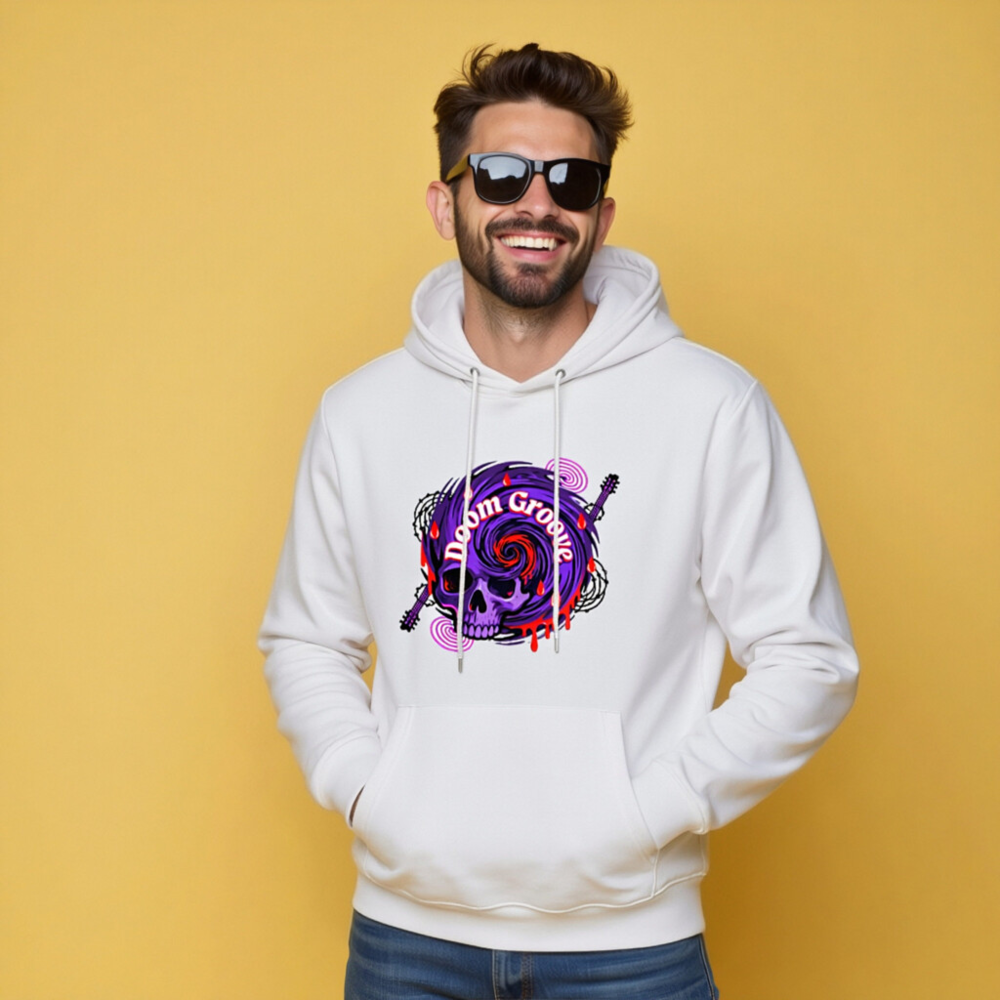 Doom Groove Skull Hoodie – Unisex Eco-Friendly Sweatshirt