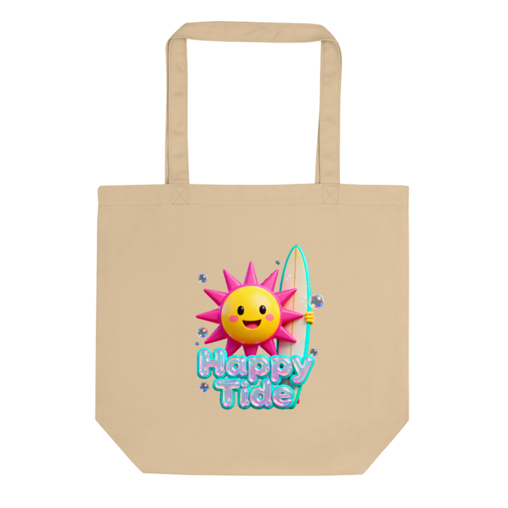 Eco Oyster Tote Bag | Happy Tide Sun Surf Design | Reusable Organic Cotton Tote