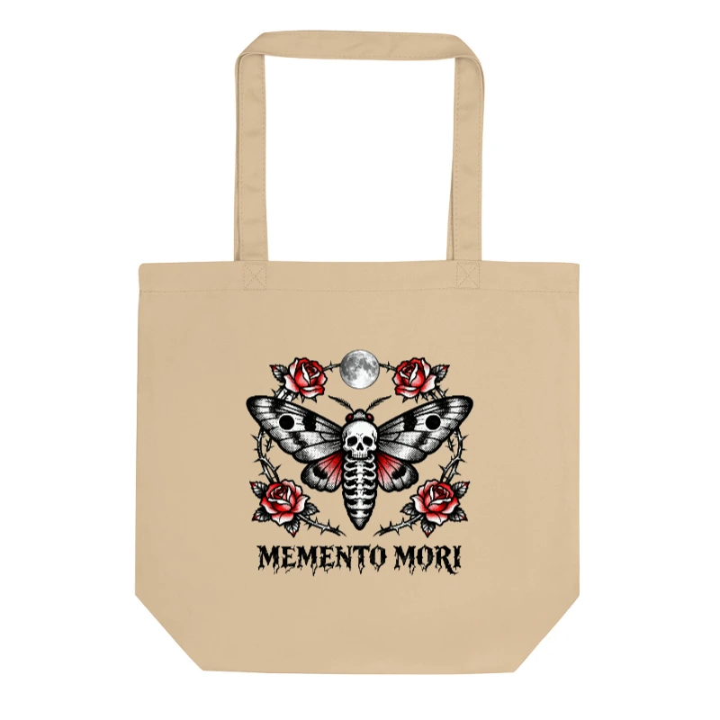 Eco Oyster Tote Bag | Memento Mori Moth & Roses Design