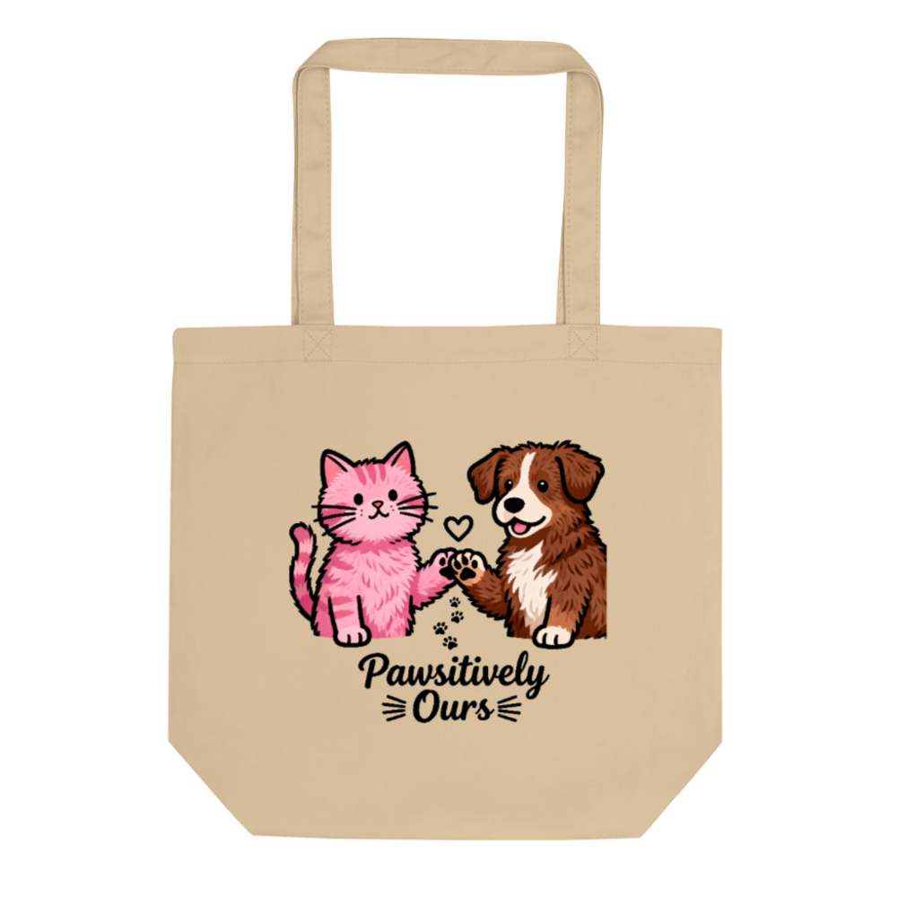 Eco Oyster Tote Bag | Pink Cat & Brown Dog Paw-Sitively Yours Design