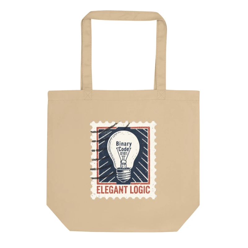 Handcrafted eco-friendly tote bag made from certified organic cotton. Features a stylish ‘Elegant Logic’ stamp design with lightbulb and binary code motif. Lightweight, durable, and perfect for everyday use. Supports sustainable living without compromising on style or function.