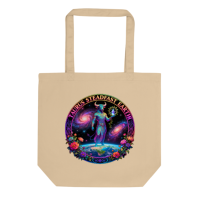 Eco Oyster Tote Bag | Taurus Steadfast Earth – Organic Cotton Tote with Cosmic Bull Design