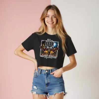 This crop top is made of 100% combed cotton, which makes the shirt extremely soft and more durable than regular cotton shirts. The relaxed fit and dropped shoulders ensure comfortable wear, while the cropped length makes it perfect for spring and summer.