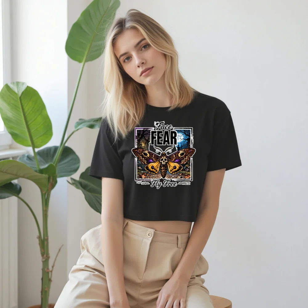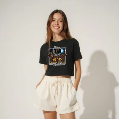 This crop top is made of 100% combed cotton, which makes the shirt extremely soft and more durable than regular cotton shirts. The relaxed fit and dropped shoulders ensure comfortable wear, while the cropped length makes it perfect for spring and summer.
