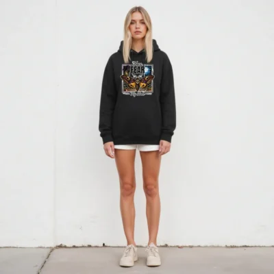 Boldly embrace courage with this unisex eco hoodie featuring a striking ‘Face Fear, Fly Free’ graphic: a skull-headed moth soaring against a moonlit forest. Made from sustainable materials, it combines edgy gothic art with comfort and conscience. Perfect for fans of dark fantasy, horror aesthetics, or empowering symbolism. Soft, durable, and ethically crafted—wear your rebellion and resilience. Ideal for casual wear, concerts, or statement layering. Designed for all genders, true to size, with front pocket and adjustable hood.