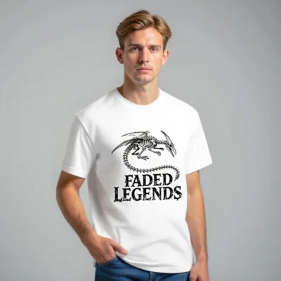 Faded Legends Dragon Skeleton Unisex T-Shirt – Black & White Skeletal Design