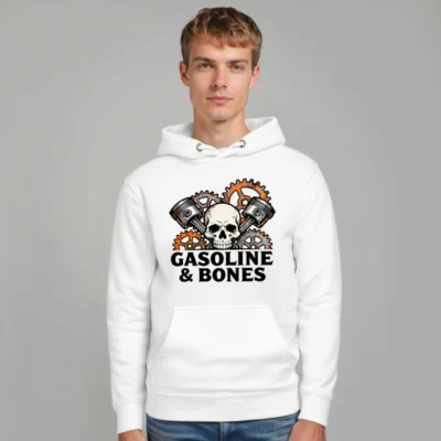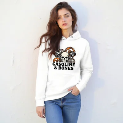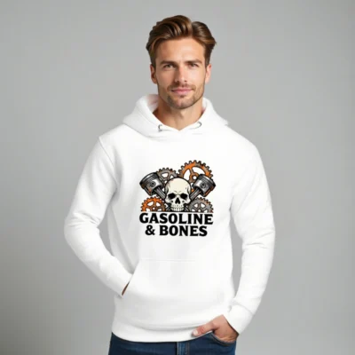 Gasoline & Bones Hoodie – Unisex Premium Pullover with Skull & Engine Gears Design