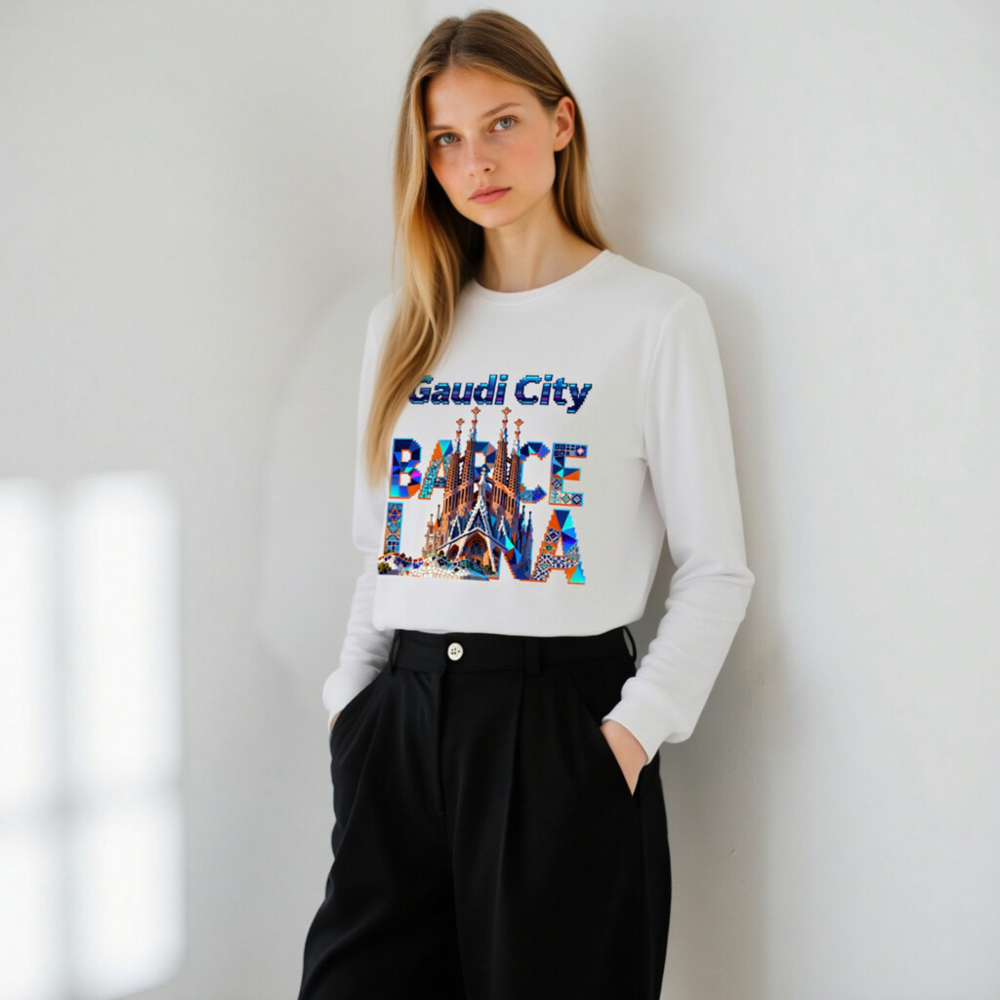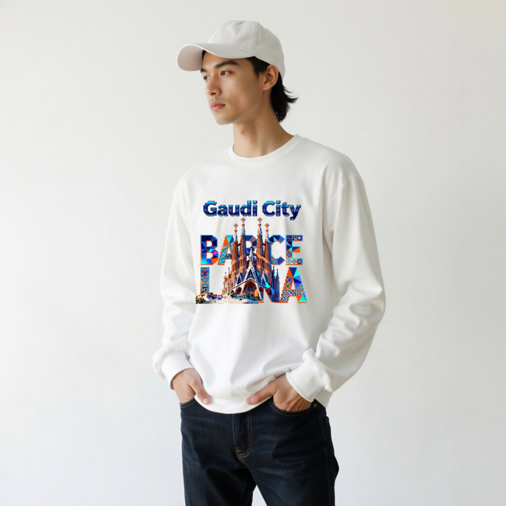 Gaudi City Barcelona Long Sleeve Tee | Unisex Artistic Design with Sagrada Familia & Park Güell