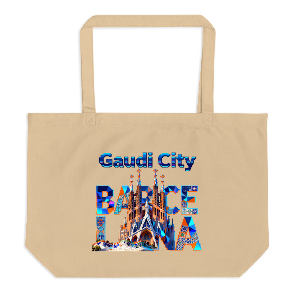 Showcase Barcelona’s iconic Gaudí architecture with this large organic tote bag. Features vibrant mosaic-style typography and the Sagrada Família, Park Güell, and Casa Batlló — all rendered in Gaudí’s signature colors. Made from 100% organic cotton, this reusable, eco-friendly canvas bag is durable, lightweight, and perfect for everyday use. Ideal gift for travelers, art lovers, and sustainability advocates.