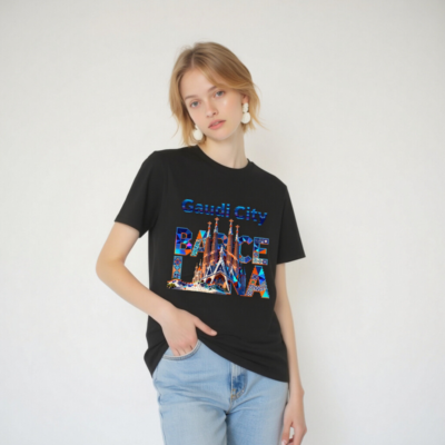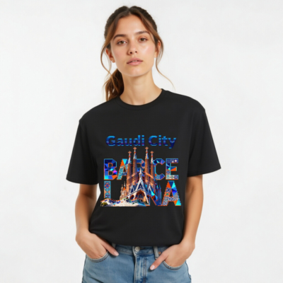 Showcase Barcelona’s iconic Gaudí architecture with this unisex organic cotton t-shirt. Features a vibrant mosaic-style design of Sagrada Família and Park Güell, blending art and sustainability. Crafted from certified organic cotton for comfort and eco-conscious wear. Perfect for travelers, art lovers, and Gaudí enthusiasts seeking authentic Catalan spirit.